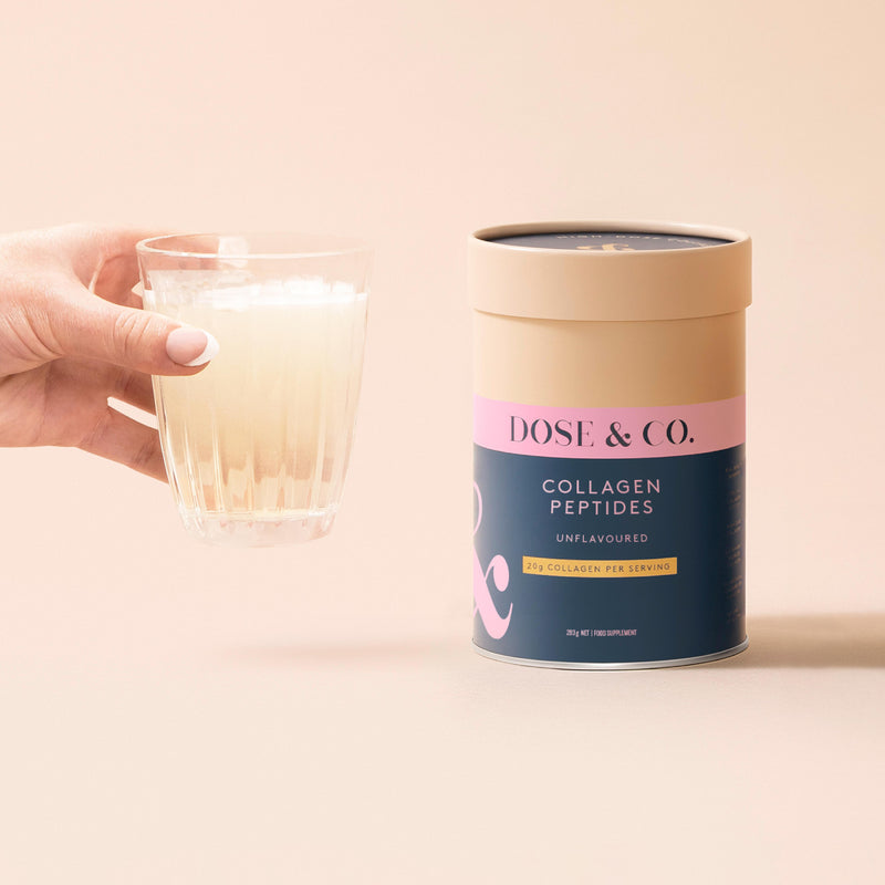Collagen plays a key role in maintaining the skin's texture and structural integrity. When skin is lacking in collagen, it can lead to sagging and the appearance of fine lines and wrinkles. Dose & Co’s supplements help to smooth and plump skin for a youthful-looking glow.