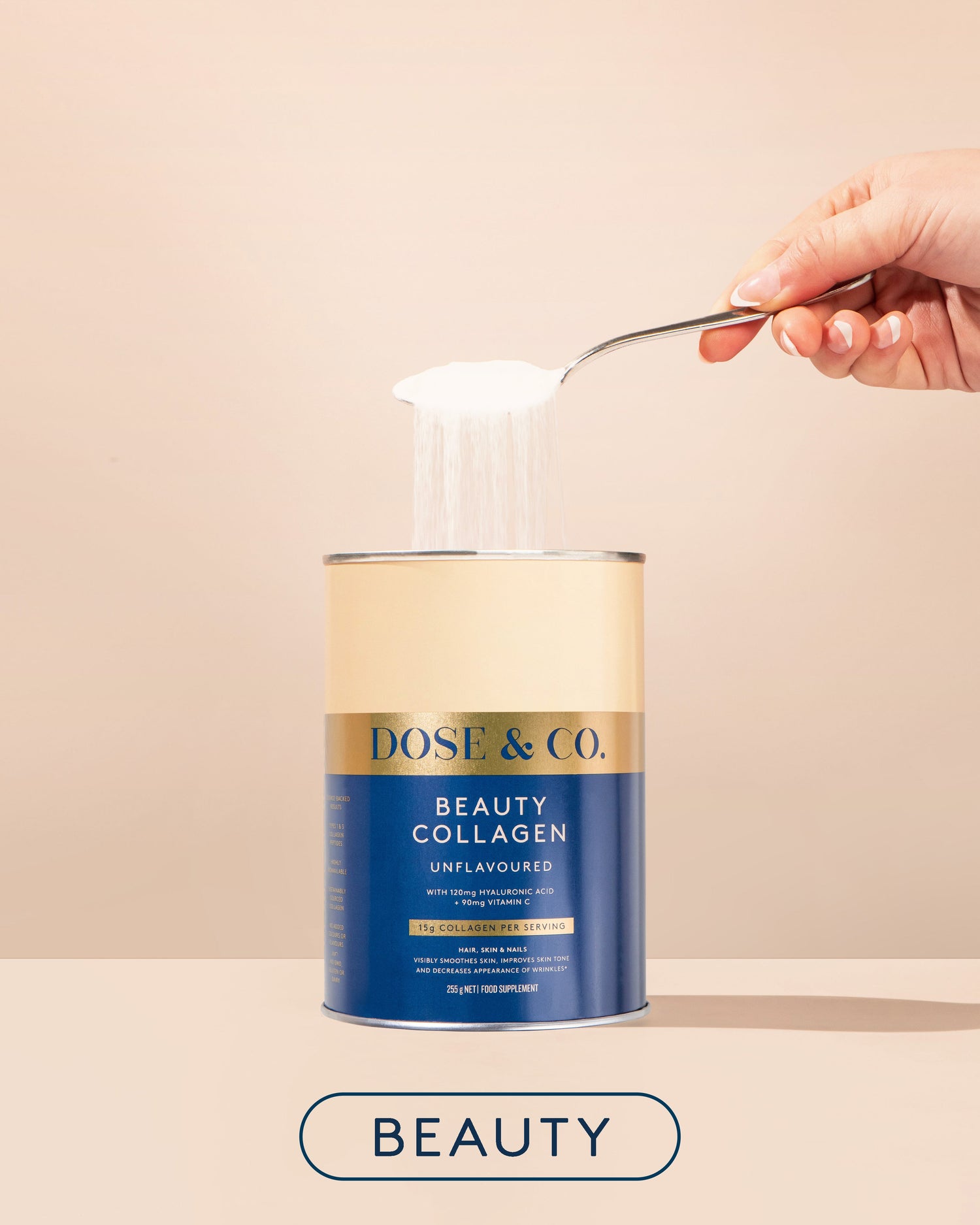 The collagen found in Dose & Co products supports skin's elasticity by maintaining the structural integrity of the skin's layers. This can lead to firmer and more resilient skin, helping to counteract the effects of sagging or loss of elasticity.