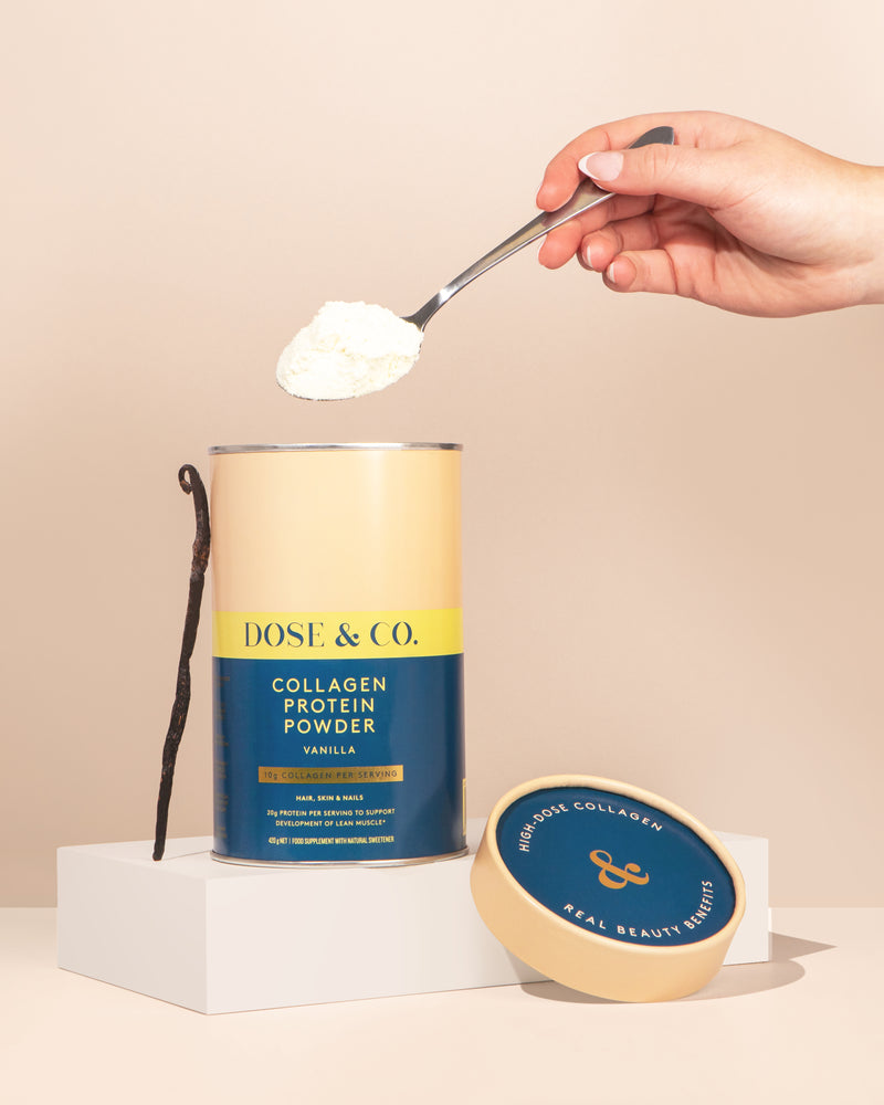 The collagen found in Dose & Co products supports skin's elasticity by maintaining the structural integrity of the skin's layers. This can lead to firmer and more resilient skin, helping to counteract the effects of sagging or loss of elasticity.